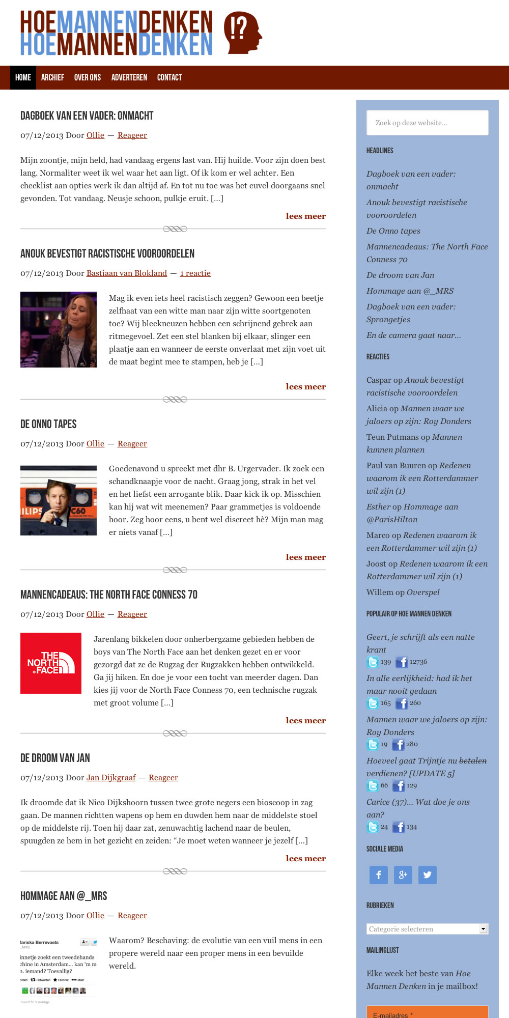 Mij is gevraagd de front-end te doen voor hoemannendenken: WordPress-coding en design. Hoe Mannen Denken is een baldadige opiniesite door schrijvers als Luuk Koelman, Pascal Vugts, Bastiaan van Blokland en Frits de Roo.