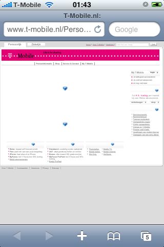 T-mobile is de enige officiële Nederlandse verkoper van iPhones. Dan is het toch zot dat zo’n bedrijf niet test hoe zijn website er op een iPhone uitziet.
